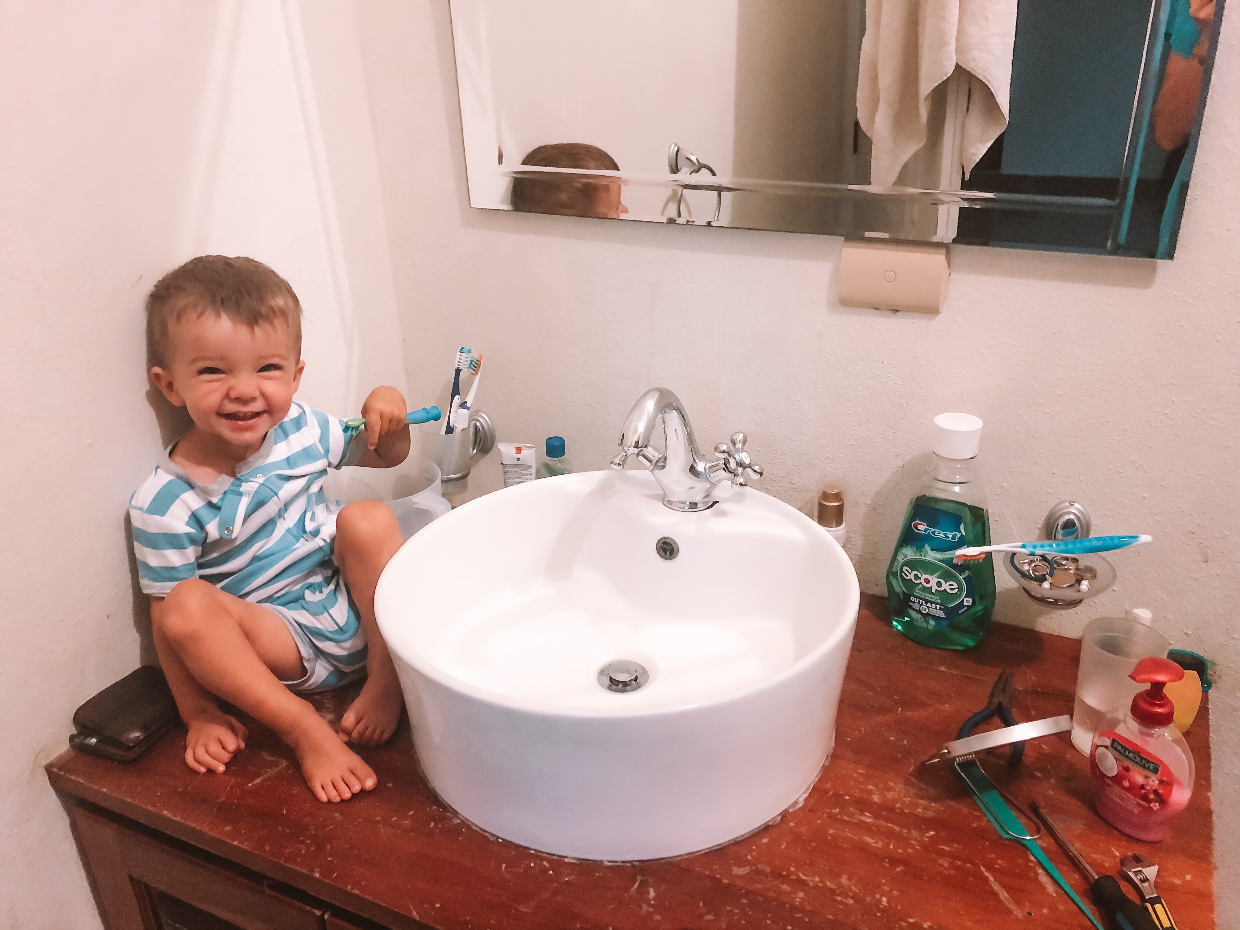 Brushing his teeth with Mom