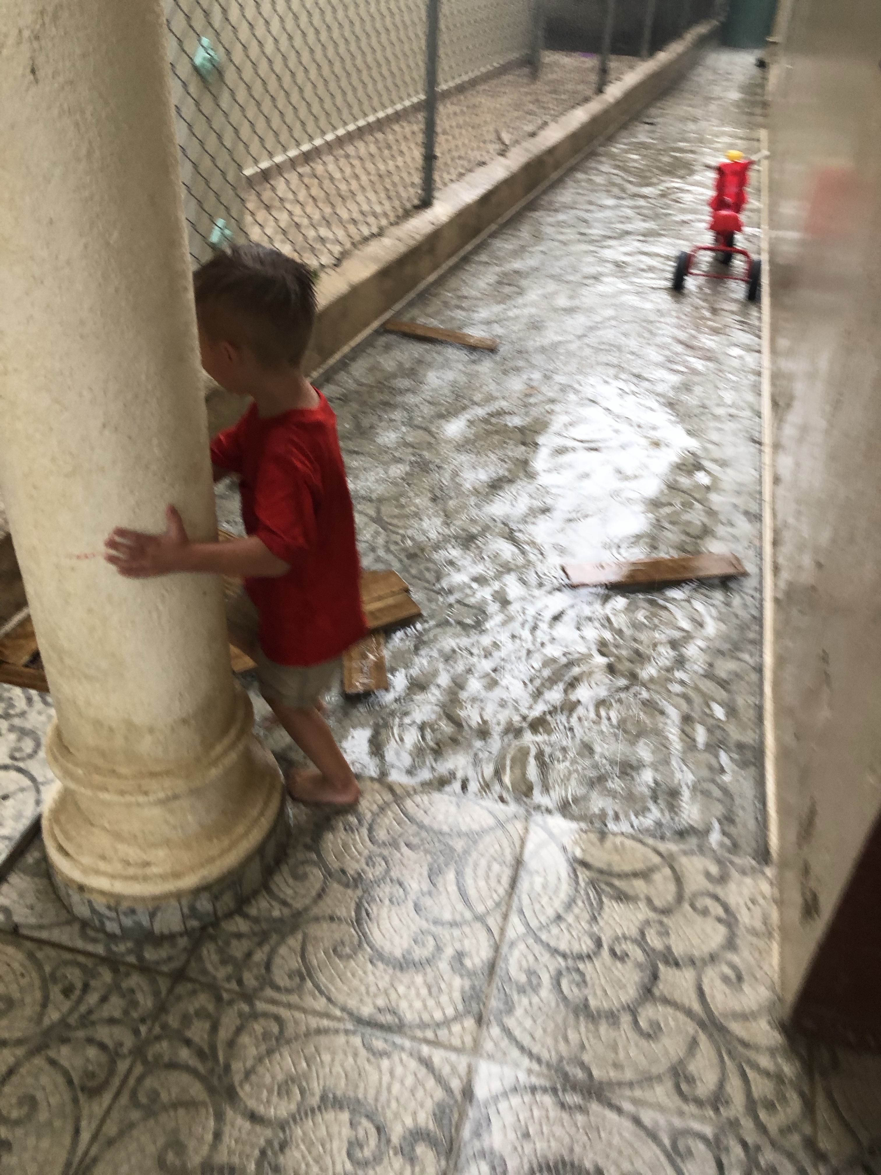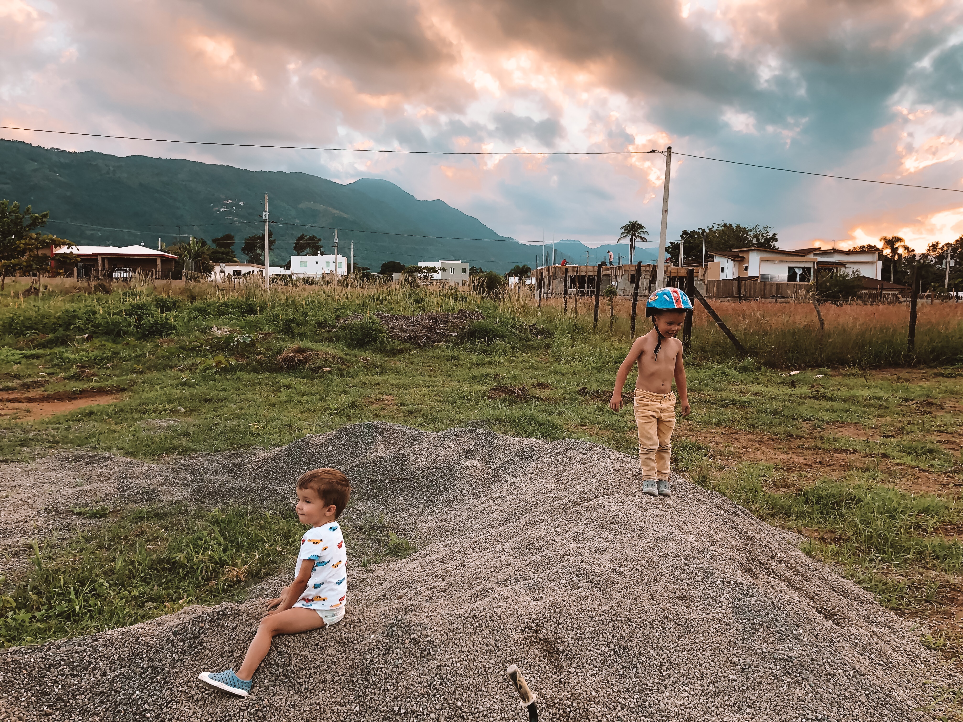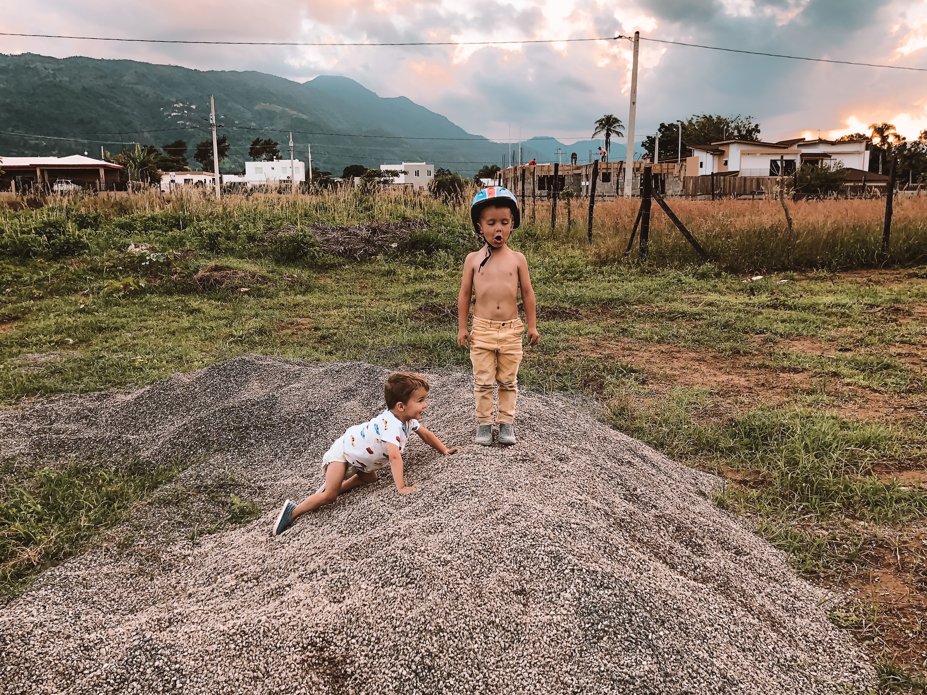 The boys playing on our new driveway