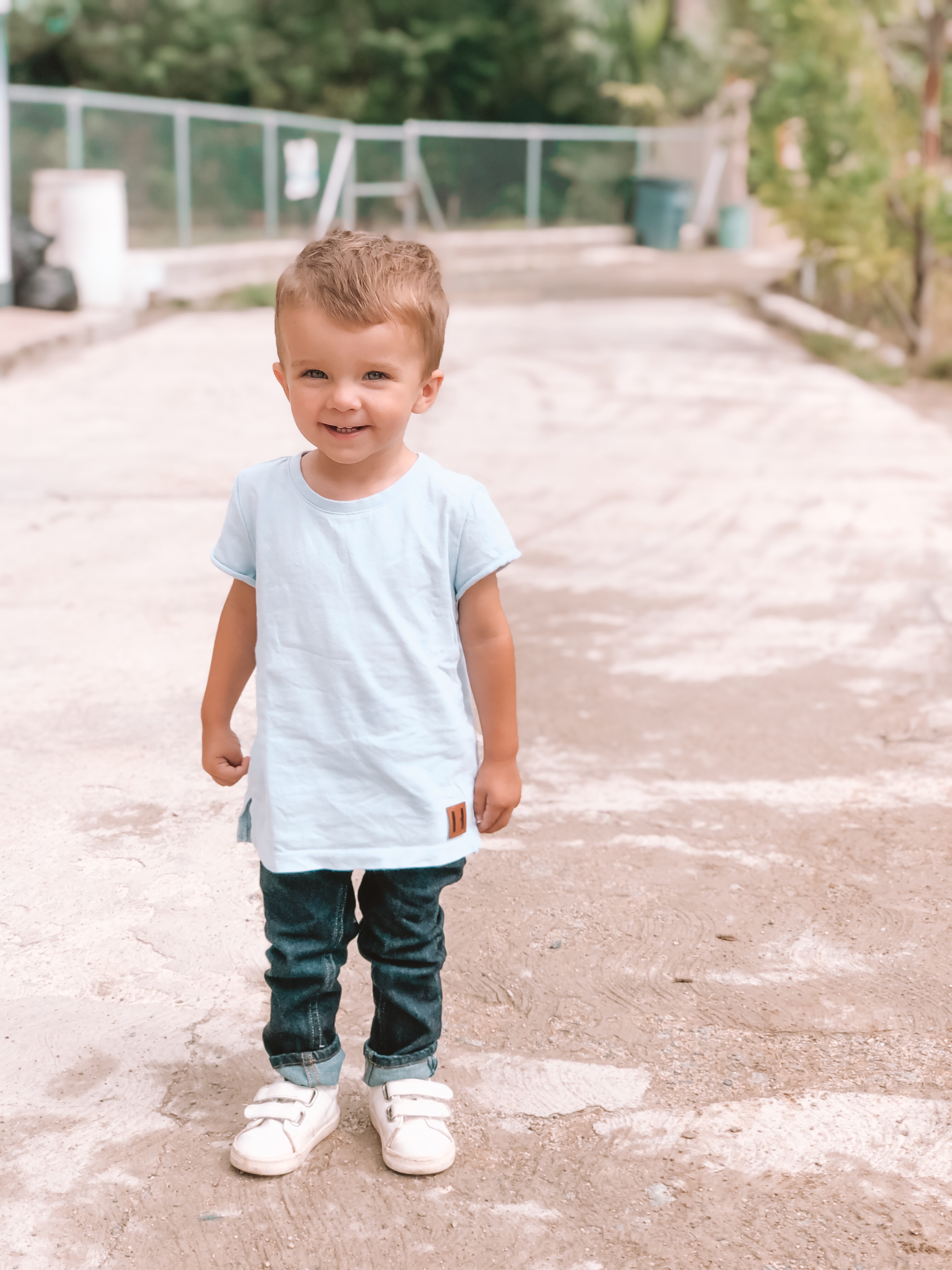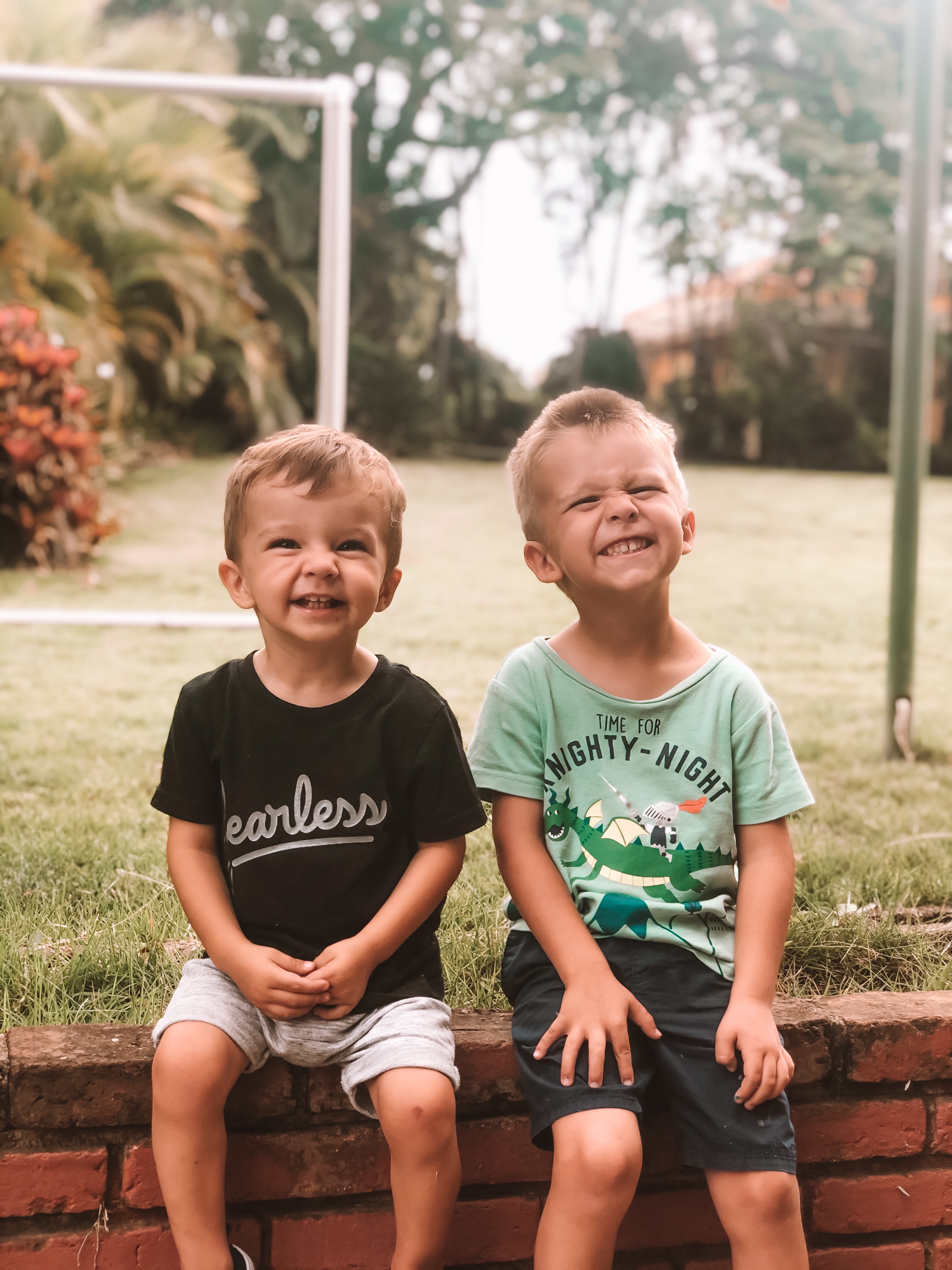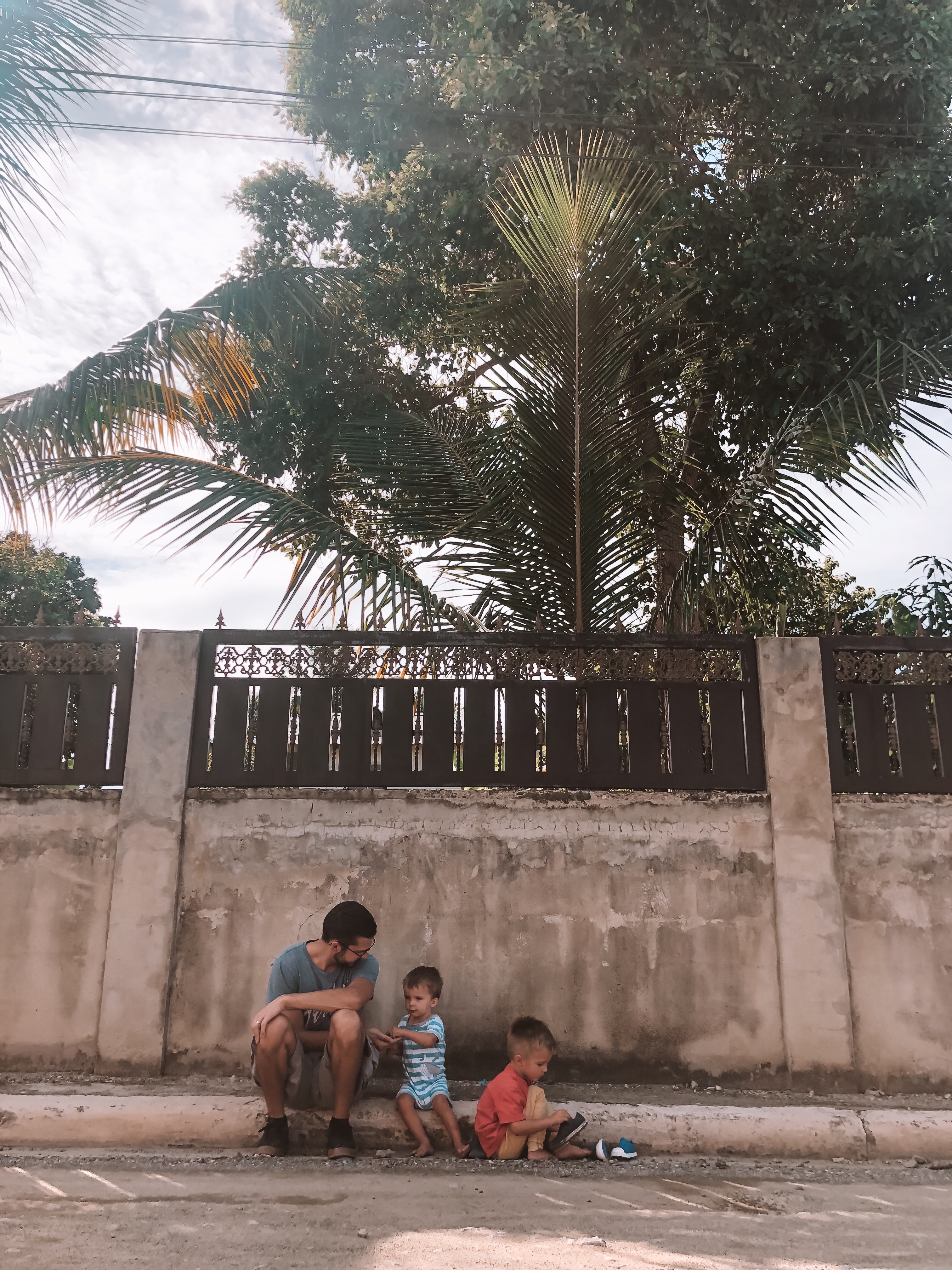 The boys playing on our new driveway